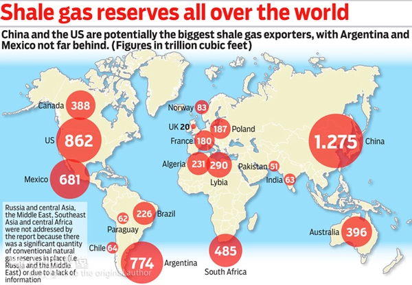 △全球页岩气储量分布