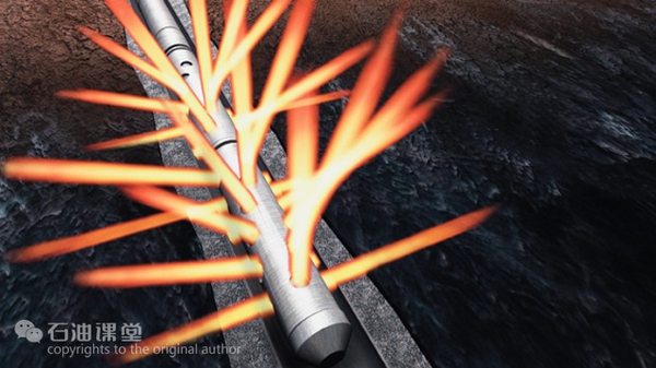 利用火药或火箭推进剂快速燃烧产生的高温高压气体,形成脉冲加载并控制压力上升速度,在井筒附近压开多方位的裂缝,沟通天然裂缝,从而达到增产増注。