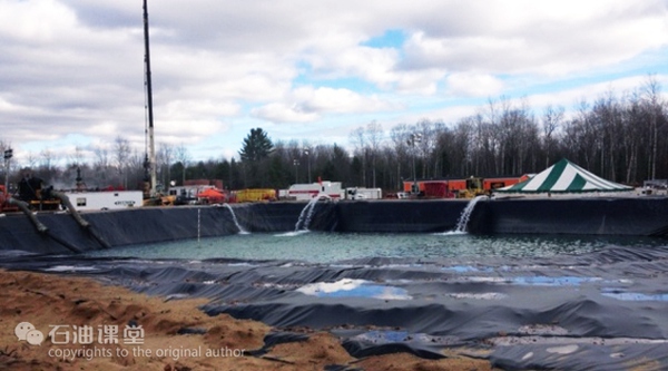 △施工现场蓄水池 压裂作业分为压前准备、压前作业、压裂施工、压后作业四个阶段。